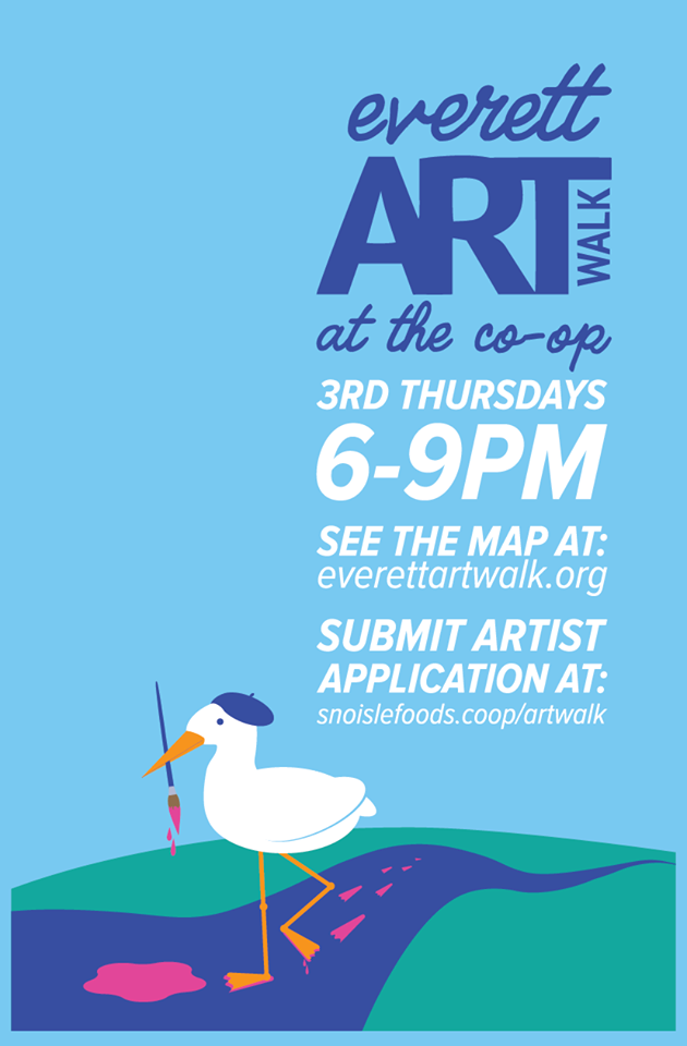Art is always shown in the “co-op’s dining area” until close at 9 pm at 2804 Grand Ave, Everett, WA 98201